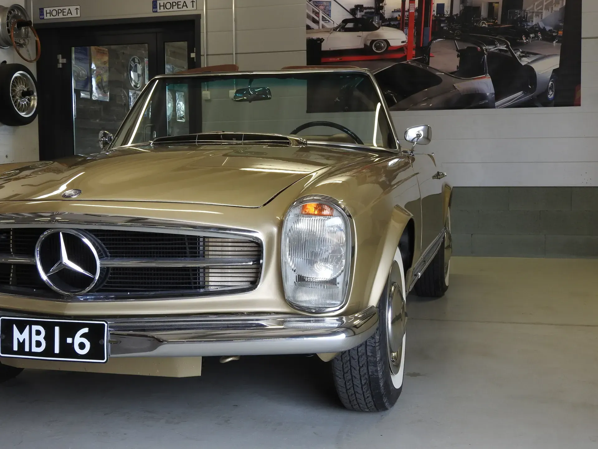 Tämä kaunis "pagoda" on tuotu Saksasta Ruotsiin merimiesautona, josta tuotu Suomeen vuonna 2000 ja entisöity täysin nykyisen omistajan toimesta vuonna 2009. Autoa säilytetään showroomissa ja huolletaan, sekä entisöintiä parannellaan säännöllisesti Samanlaisen auton omistajakuntaan kuuluvat esim. Nico Rosberg ja David Coulthard. Alkuperävärissään "tunis beige metallic" ja varustettuna muunmuassa eurooppamallin etuvaloilla.
